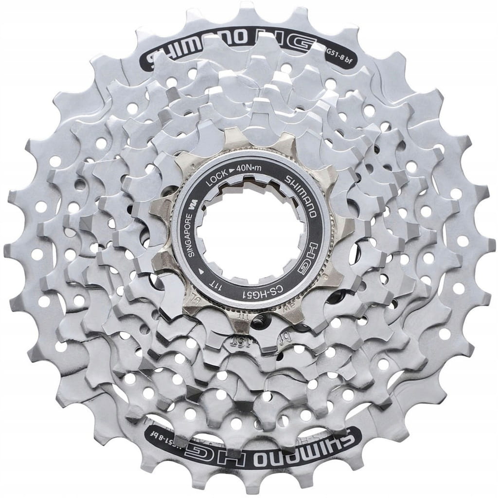 Shimano CS-HG51-8 to solidna i niezawodna kaseta przeznaczona do napędów 8-rzędowych, idealna do rowerów MTB i trekkingowych. Wykonana ze stali pokrytej chromem, oferuje trwałość oraz płynną zmianę biegów dzięki technologii HyperGlide (HG).