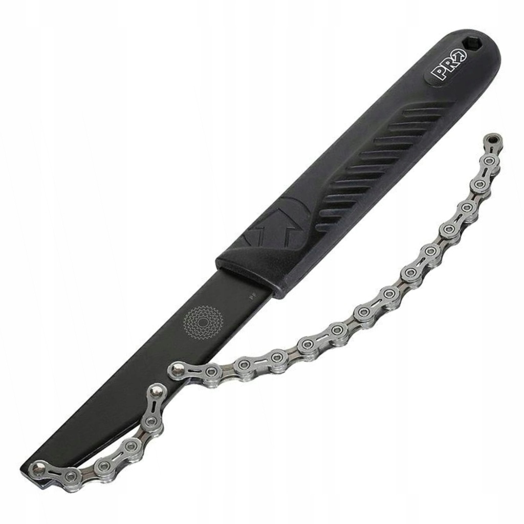 Zaprojektowany, by ułatwić Ci pracę bacik do kaset PRO zawiera łańcuch 11-rzędowy i służy do przytrzymywania kasety podczas luzowania pierścienia blokującego kasety za pomocą klucza do kaset PRO.